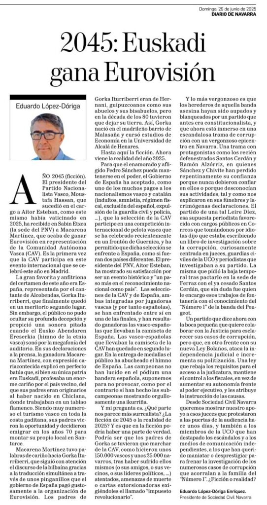 2045: “Euskadi” gana Eurovisión, publicado en Diario de Navarra (30-06-2025)